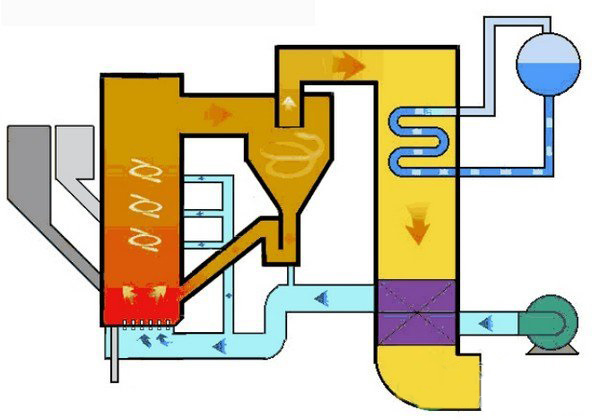 為了解決垃圾熱值低,燃燒不穩(wěn)定的問題,工程還采用了循環(huán)流化床鍋爐,它將垃圾固體顆粒懸浮在半空中,從而使垃圾顆粒的燃燒類似于流體,進(jìn)而提高燃燒效率。