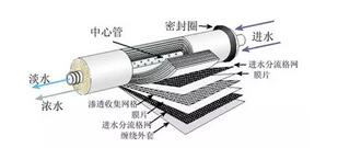 反滲透膜是一種介質(zhì),它是靠壓力使溶液中的溶劑(一般常指水)通過反滲透膜(一種半透膜)而分離出來與滲透方向相反,可使用大于滲透壓的反滲透法進行分離、提純和濃縮溶液。