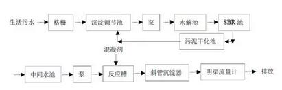 當單一的處理方法處理效果不理想時,為了達到污水排放的標準,可以使用多種方法聯(lián)合的方式。最常見的是物理-化學處理法,其基本工藝如下: