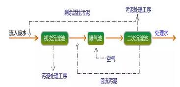 活性污泥工藝是國內(nèi)外城市污水處理工藝的主流。由于其較高的處理效率,運行穩(wěn)定可靠,而被大中型污水處理廠廣泛使用。其基本工藝流程圖如下: