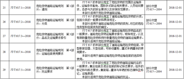 該標(biāo)準(zhǔn)將于2018年12月1日起實(shí)施。標(biāo)準(zhǔn)包括7個(gè)部分、600多頁、40多萬字,內(nèi)容完整、系統(tǒng)性強(qiáng),對危險(xiǎn)貨物分類、包裝、托運(yùn)、裝卸、運(yùn)輸?shù)拳h(huán)節(jié)的操作要求都進(jìn)行了明確規(guī)定。