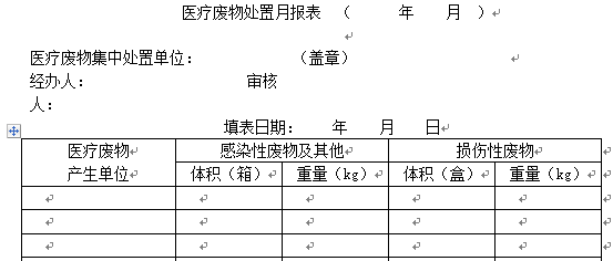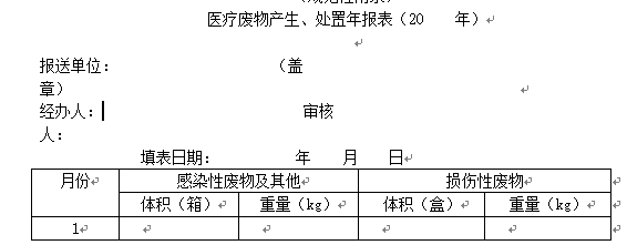 三、醫(yī)療廢物處置月報(bào)及年報(bào)(單位和處置中心都要填寫)