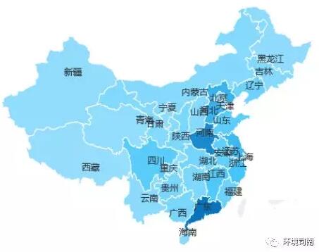 容易出環(huán)衛(wèi)大項(xiàng)目的10個(gè)省份中,廣東、江蘇、浙江、山東、四川等五個(gè)省為傳統(tǒng)環(huán)衛(wèi)大省,河南、河北、福建、江西、安徽等五個(gè)省為新興環(huán)衛(wèi)大省。
