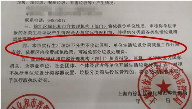 “這也是一種壓力的自然傳遞,倒逼垃圾產(chǎn)生源頭切實履行分類義務。”徐匯區(qū)綠化市容局相關負責人表示,商場設置垃圾分揀場所和分揀員,是一筆不少的投入,如果源頭承擔的分類義務越多、分類的效果越好,那么相應下游的分揀投入就會減少,在這種規(guī)律下,商場物業(yè)自然會想盡辦法倒逼商戶做好垃圾分類,這些“軟約束”很多時候比動用執(zhí)法部門和罰款這些剛性手段的效果還要好。