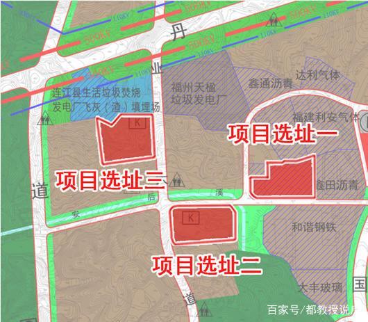 本次選址方案共三個(gè)地塊,均位于東湖鎮(zhèn)飛石村北側(cè),用地性質(zhì)均為二類工業(yè)用地。三個(gè)擬選址地塊均位于連江西北經(jīng)濟(jì)區(qū)南部,位于工業(yè)園區(qū)中心地帶,距連江縣城約7公里,距福州市區(qū)約24公里,靠近產(chǎn)品主銷區(qū)。三個(gè)擬選址地塊均距離連江縣生活垃圾焚燒發(fā)電廠、連江縣生活垃圾焚燒發(fā)電廠飛灰(渣)填埋場不足0.5公里,垃圾轉(zhuǎn)運(yùn)方便。
