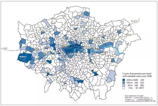 PPP模式可能使項目更加物有所值,公共預(yù)算支出更有效率,但單純依靠政府付費,財政可承受能力終歸是有上限的。因此,如何挖掘項目本身的商業(yè)潛力和拓展公共支出的來源就顯得尤為重要。大型基礎(chǔ)設(shè)施項目往往具有外部性,可以采用適當(dāng)?shù)姆椒▽⑵渫獠啃б鎯?nèi)在化,來反哺項目本身。橫穿倫敦108公里的伊麗莎白線的總建設(shè)預(yù)算達(dá)148億英鎊,計劃通過稅收增量融資和開發(fā)基礎(chǔ)設(shè)施費的模式來將地鐵帶動的土地和物業(yè)價值升值反饋給軌道項目。一方面,在未來24-30年內(nèi),對該軌道項目收益的價值5.5萬英鎊以上的商業(yè)物業(yè)額外征收2%的商業(yè)物業(yè)稅(BRS-Business Rate Supplement),如下圖所示。