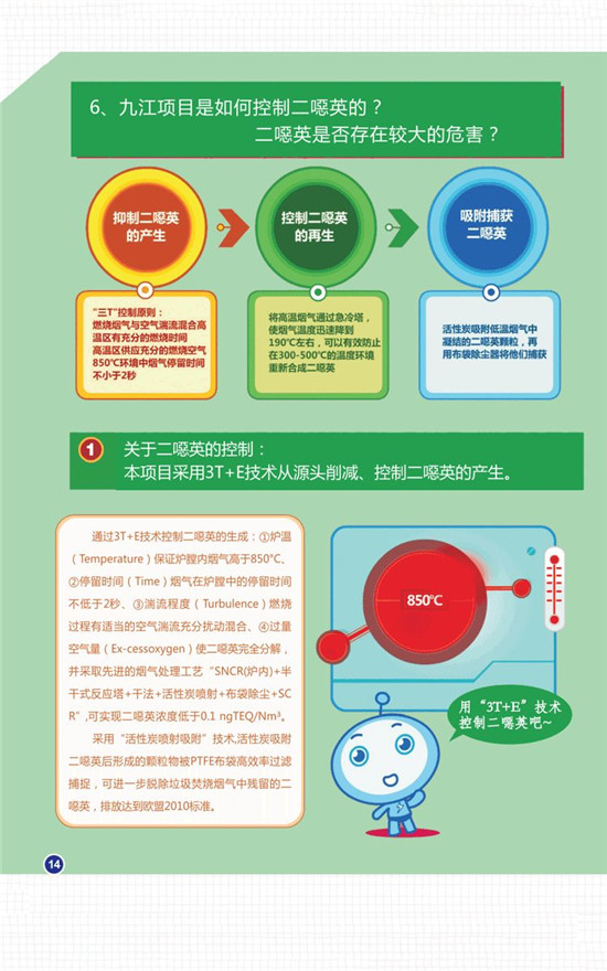 值得一提的是,九江垃圾焚燒發(fā)電項目采用3T+E技術(shù)從源頭削減、控制二噁英的產(chǎn)生。即保持垃圾焚燒溫度不低于850℃,煙氣在850C高溫區(qū)停留時間大于2秒,煙氣在爐膛內(nèi)充分?jǐn)_動混合,使垃圾焚燒產(chǎn)生的二噁英得以分解消失;同時,煙氣凈化系統(tǒng)中采用“活性炭噴射吸附”技術(shù);可有效吸附垃圾在爐膛內(nèi)焚燒時未完全分解的二噁英,排放標(biāo)準(zhǔn)完全達到或優(yōu)于0.1 ng TEQ/Nm3。通過上述環(huán)保措施處理后,二噁英的排放將達到歐盟2010標(biāo)準(zhǔn)(目前世界煙氣排放最高標(biāo)準(zhǔn))。