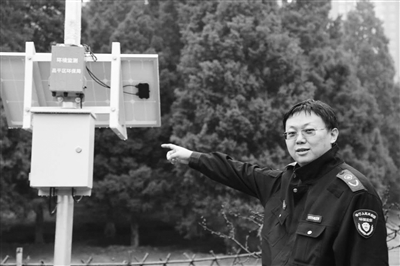 “‘微站’的核心部件就是這個(gè)藍(lán)盒子?!痹诓焦珗@內(nèi),昌平區(qū)環(huán)保局工作人員姚磊指著地面豎起的立桿上的一套系統(tǒng)向記者介紹。這種實(shí)時(shí)監(jiān)控PM2.5和PM10兩個(gè)因子的微型監(jiān)測站,可以實(shí)現(xiàn)每一分鐘向系統(tǒng)上傳一次數(shù)據(jù)。