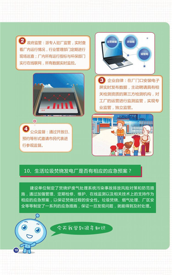 “我們制定了楚燒爐廢氣處理系統(tǒng)污染事故排放風(fēng)險對策和防范措施,通過加強管理、定期檢修、維護(hù)、在線監(jiān)測以及相關(guān)技術(shù)上的支持作為相應(yīng)的應(yīng)急預(yù)案,以保證焚燒過程的安全性。垃極焚燒煙氣處理、廠區(qū)安全等等制定了一系列的應(yīng)急措施,保證一且發(fā)觀問題,就能得到及時處理?!惫獯髧H有關(guān)負(fù)責(zé)人滿懷信心地介紹說。
