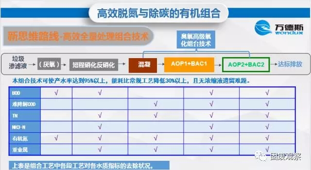 南京萬(wàn)德斯環(huán)保科技股份有限公司上海分公司總經(jīng)理陳建湧介紹,在滲瀝液脫碳技術(shù)上,萬(wàn)德斯環(huán)保采用“厭氧+高效生化+納濾+臭氧高級(jí)氧化AOP(Advanced Oxidation Process)” 為主的工藝,在高效脫氮中,利用短程硝化技術(shù),節(jié)省供氧量25%、節(jié)省反硝化碳源40%、減少污泥生成量50%、減少投堿量、縮短反應(yīng)時(shí)間。在滲瀝液高效全量處理中,組合利用 “厭氧+短程硝化反硝化+臭氧高級(jí)氧化(混凝+AOP1+BAC1+AOP2+BAC2)”技術(shù),能使產(chǎn)水率達(dá)到95%以上,且無(wú)濃縮液遺留難題。除技術(shù)創(chuàng)新外,陳建湧總經(jīng)理認(rèn)為,提倡垃圾干濕分類,采取各種有效措施減少各種好水分包括雨水進(jìn)入垃圾,以及垃圾堆場(chǎng)等,對(duì)降低滲瀝液處理成本具有非常重要的意義。
