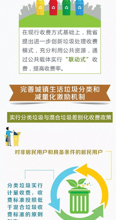 到2020年底前各市、縣(市、區(qū))要全面建立,覆蓋到所有建制鎮(zhèn)的生活垃圾處理收費(fèi)制度,按照《通知》,對非居民用戶和具備條件的居民用戶實(shí)行分類垃圾與混合垃圾差別化收費(fèi)政策,激勵用戶按照“減量化、資源化、無害化”原則,自覺開展生活垃圾分類工作,促進(jìn)垃圾源頭減量,推動可再生資源回收利用。