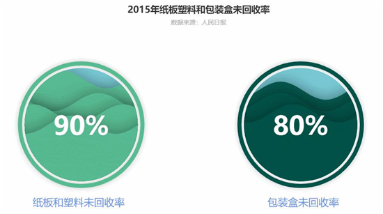 與高消耗量形成鮮明對(duì)比的是極低的回收率。2015年,紙板和塑料的實(shí)際未回收率大于90%,包裝物總體未回收率大于80%。