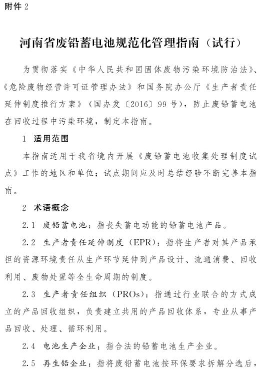 2. 河南省廢鉛蓄電池規(guī)范化管理指南 (試行)