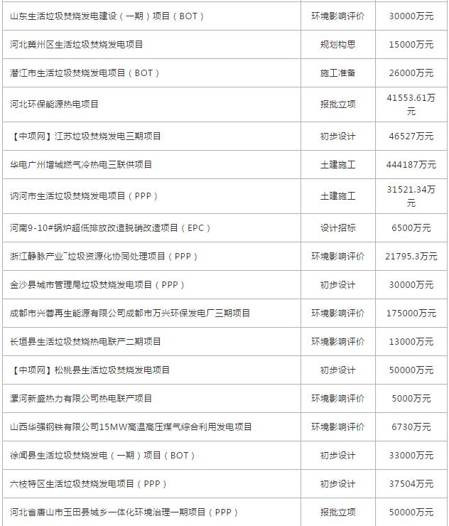 11月份全國擬在建垃圾發(fā)電項(xiàng)目