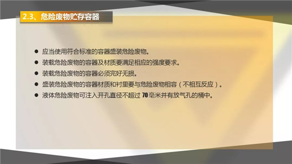 5) 企業(yè)需要有符合規(guī)定的標(biāo)簽和標(biāo)識,不得擅自傾倒、堆放危險(xiǎn)廢物;