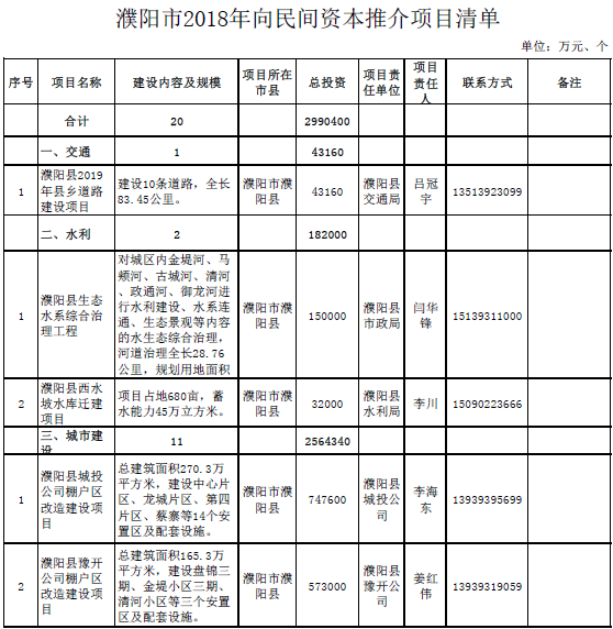 附件:濮陽市2018年向民間資本推介項(xiàng)目清單