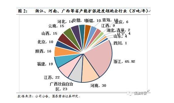 就目前已經(jīng)投產(chǎn)的項(xiàng)目中,紅獅水泥合計(jì)投產(chǎn)規(guī)模50.5萬(wàn)噸(市占率18%)、海螺創(chuàng)業(yè)投產(chǎn)規(guī)模44.36萬(wàn)噸(市占率16%)、金隅集團(tuán)投產(chǎn)規(guī)模22萬(wàn)噸(市占率8%)和金圓股份投產(chǎn)21.42萬(wàn)噸(市占率8%),四家公司累計(jì)市占率達(dá)到50%。同時(shí)根據(jù)我們對(duì)各公司已經(jīng)處于環(huán)評(píng)或建設(shè)狀態(tài)的項(xiàng)目跟蹤,產(chǎn)能將在2019年進(jìn)一步釋放,龍頭優(yōu)勢(shì)有望進(jìn)一步夯實(shí)。