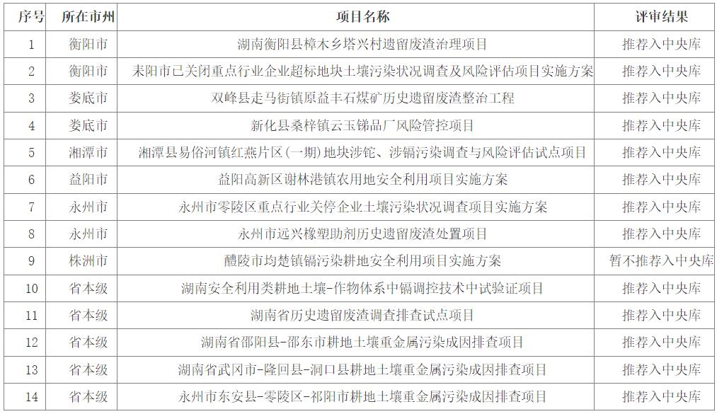 湖南省生態(tài)環(huán)境廳關(guān)于2022年度第一批土壤污染防治項目、地下水污染防治項目評審結(jié)果的公示 根據(jù)《土壤污染防治資金管理辦法》、《中央生態(tài)環(huán)境資金項目管理規(guī)程》、《中央生態(tài)環(huán)境資金項目儲備庫入庫指南(2021年)》等有關(guān)要求,為加強項目儲備,提高項目儲備質(zhì)量,經(jīng)項目單位申請、市級生態(tài)環(huán)境部門審查、專家評...