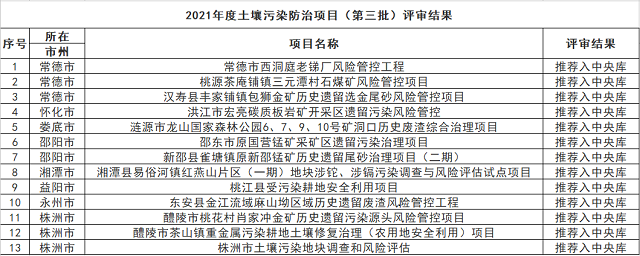 湖南省生態(tài)環(huán)境廳關(guān)于2021年度土壤污染防治項(xiàng)目(第三批)、地下水污染防治項(xiàng)目(第二批)評審結(jié)果的公示 根據(jù)《土壤污染防治專項(xiàng)資金管理辦法》、《關(guān)于印發(fā)<中央生態(tài)環(huán)境資金項(xiàng)目儲備庫入庫指南>的通知》、《湖南省省級財(cái)政專項(xiàng)資金公開辦法(試行)》等有關(guān)要求,經(jīng)項(xiàng)目單位申請、市級環(huán)保部門審查、...