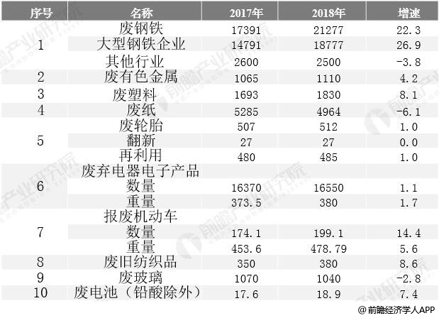 中國再生資源回收總量增長較快 再生資源是指在生產(chǎn)和生活消費中產(chǎn)生的,不再具有原來使用價值,但經(jīng)過回收、分類和加工處理,能獲得新的使用價值的各種廢物。2018年,隨著污染防治攻堅戰(zhàn)持續(xù)推進,環(huán)保督查力度進步加大,鋼鐵、有色金屬等行業(yè)減少原生礦產(chǎn)資源的使用量,不斷提高廢鋼鐵、廢有色金屬等環(huán)保原料的使用比...