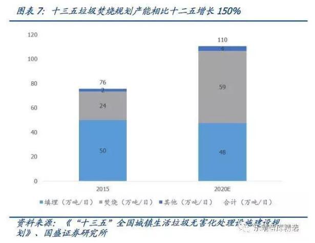 2019、2020焚燒行業(yè)進(jìn)入投產(chǎn)大年。垃圾焚燒解決城市用地痛點,填埋處置方式走弱,中國城市固廢處置由填埋逐步轉(zhuǎn)向焚燒。根據(jù)《“十三五”全國城鎮(zhèn)生活垃圾無害化處理設(shè)施建設(shè)規(guī)劃》,到2020年,我國垃圾發(fā)電處理規(guī)模目標(biāo)接近60萬噸/日。 2015年存量垃圾焚燒產(chǎn)能為23.5萬噸...