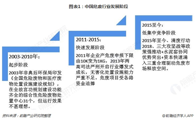 近幾十年來,隨著經(jīng)濟(jì)的高速發(fā)展,我國環(huán)境污染問題和自然資源緊張問題逐步凸顯出來。在環(huán)保壓力逐漸增大的背景下,我國危廢行業(yè)也得以快速發(fā)展。目前,我國危廢行業(yè)市場規(guī)模超千億,未來,市場競爭格局有望重塑。 危廢行業(yè)進(jìn)入低集中競爭階段 截止2018年底,我國危廢行業(yè)一共經(jīng)理了三個(gè)階段。第一個(gè)階段是2003-...