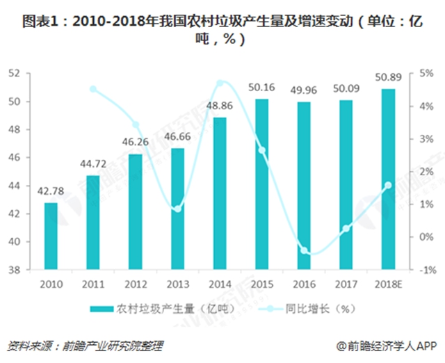 農(nóng)村垃圾產(chǎn)生量持續(xù)增高 近幾年,隨著我國城市化進(jìn)程的不斷推進(jìn),我國城鎮(zhèn)人口持續(xù)增長,農(nóng)村人口有減少的趨勢,但是從農(nóng)村垃圾的產(chǎn)生量看,總量不斷增加,人均農(nóng)村垃圾產(chǎn)生量表現(xiàn)為大幅增加的趨勢。據(jù)統(tǒng)計(jì),2010年我國農(nóng)村垃圾的產(chǎn)生量為42.78億噸,至2017年農(nóng)村垃圾產(chǎn)生量為50.09億噸,由此可見,農(nóng)村...