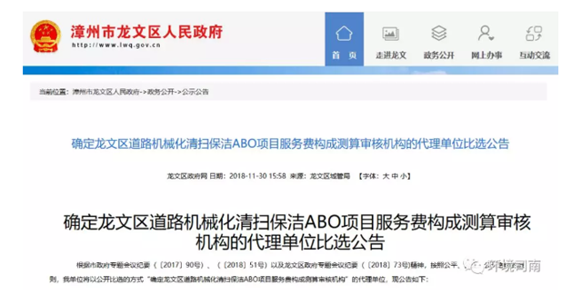 【中國環(huán)保在線 固廢處理】來自漳州市人民政府、閩南日報、漳州人民廣播電臺等媒體消息,根據(jù)漳州市政府專題會議紀(jì)要(〔2017〕90號)、(〔2018〕51號)精神,漳州城投環(huán)境集團(tuán)已以授權(quán)經(jīng)營模式(ABO)獲得漳州市“主城區(qū)、龍文區(qū)、薌城區(qū)”環(huán)衛(wèi)運(yùn)營項目(機(jī)械保潔、人工保潔、垃...