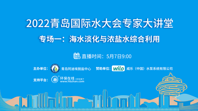 聚焦【工業(yè)節(jié)水與污水資源化】議題,由環(huán)保在線攜手青島阿迪埃脫鹽中心舉辦的“2022青島國際水大會專家大講堂”線上活動,將于5月10日上午9:00翻開第二篇章。屆時,各領域專家、學者及特邀嘉賓將齊聚一堂,以“演講+實時互動”的形式,圍繞工業(yè)水處理熱點展開...