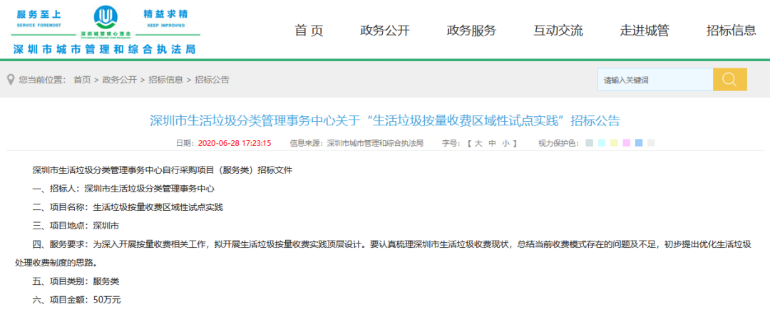 文章導(dǎo)讀6月,深圳市啟動(dòng)“生活垃圾按量收費(fèi)區(qū)域性試點(diǎn)實(shí)踐項(xiàng)目”公開(kāi)招標(biāo)。按計(jì)劃,中標(biāo)人將于12月10日提交項(xiàng)目成果。9月1日,有著里程碑式意義的《深圳市生活垃圾分類管理?xiàng)l例》開(kāi)始實(shí)施,宣告深圳垃圾分類進(jìn)入法治強(qiáng)制時(shí)代。《條例》授權(quán)深圳市人民政府按照“誰(shuí)產(chǎn)生誰(shuí)付費(fèi)和差別化收費(fèi)”的原則,逐步建立計(jì)量收費(fèi)...