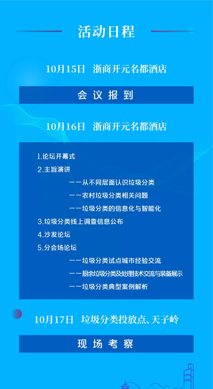 文章導(dǎo)讀中國城市環(huán)境衛(wèi)生協(xié)會(huì)垃圾分類專業(yè)委員會(huì)舉辦的“2020 垃圾分類杭州高峰論壇”,將于2020 年 10 月 15 日—17 日在杭州舉行。會(huì)議以“找差距、補(bǔ)短板,強(qiáng)化垃圾分類全過程管理”為主題,將薈萃全國環(huán)衛(wèi)領(lǐng)域精英,包括中國城市環(huán)境衛(wèi)生協(xié)會(huì)會(huì)長徐文龍、中國城市環(huán)境衛(wèi)生協(xié)會(huì)秘書長劉晶昊、中國...