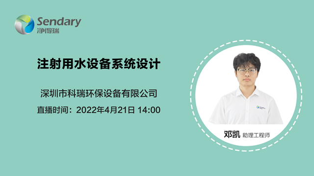 注射用水設(shè)備系統(tǒng)設(shè)計(jì)需要考慮哪些因素?如何做好URS分析?注射用水要滿足什么法規(guī)?設(shè)計(jì)基礎(chǔ)及系統(tǒng)工藝又有哪些?4月21號(hào)下午14:00,凈得瑞將為大家?guī)?lái)專場(chǎng)直播講座:《注射用水設(shè)備系統(tǒng)設(shè)計(jì)》進(jìn)行解惑。圖一 《注射用水設(shè)備系統(tǒng)設(shè)計(jì)》點(diǎn)擊圖片進(jìn)入直播間 直播由凈得瑞助理工程師鄧凱在線分享,歡迎大家鎖定...