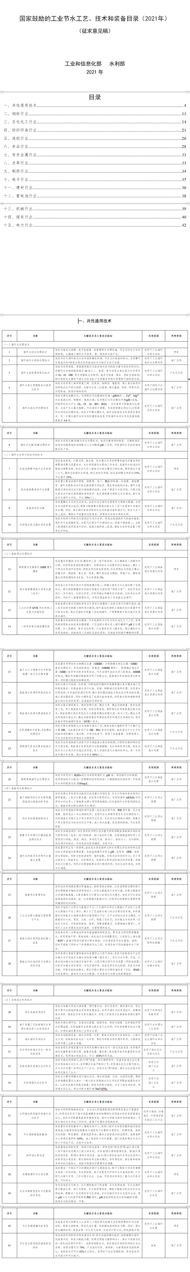 《國(guó)家鼓勵(lì)的工業(yè)節(jié)水工藝、技術(shù)和裝備目錄(2021年)》公示 根據(jù)《關(guān)于征集國(guó)家工業(yè)節(jié)水工藝、技術(shù)和裝備的通知》(工信廳聯(lián)節(jié)〔2021〕65號(hào))要求,經(jīng)企業(yè)申報(bào)、省級(jí)工業(yè)和信息化主管部門及有關(guān)行業(yè)協(xié)會(huì)和中央企業(yè)推薦、專家評(píng)審等,工業(yè)和信息化部、水利部共同組織編制了《國(guó)家鼓勵(lì)的工業(yè)節(jié)水工藝、技術(shù)和裝備...