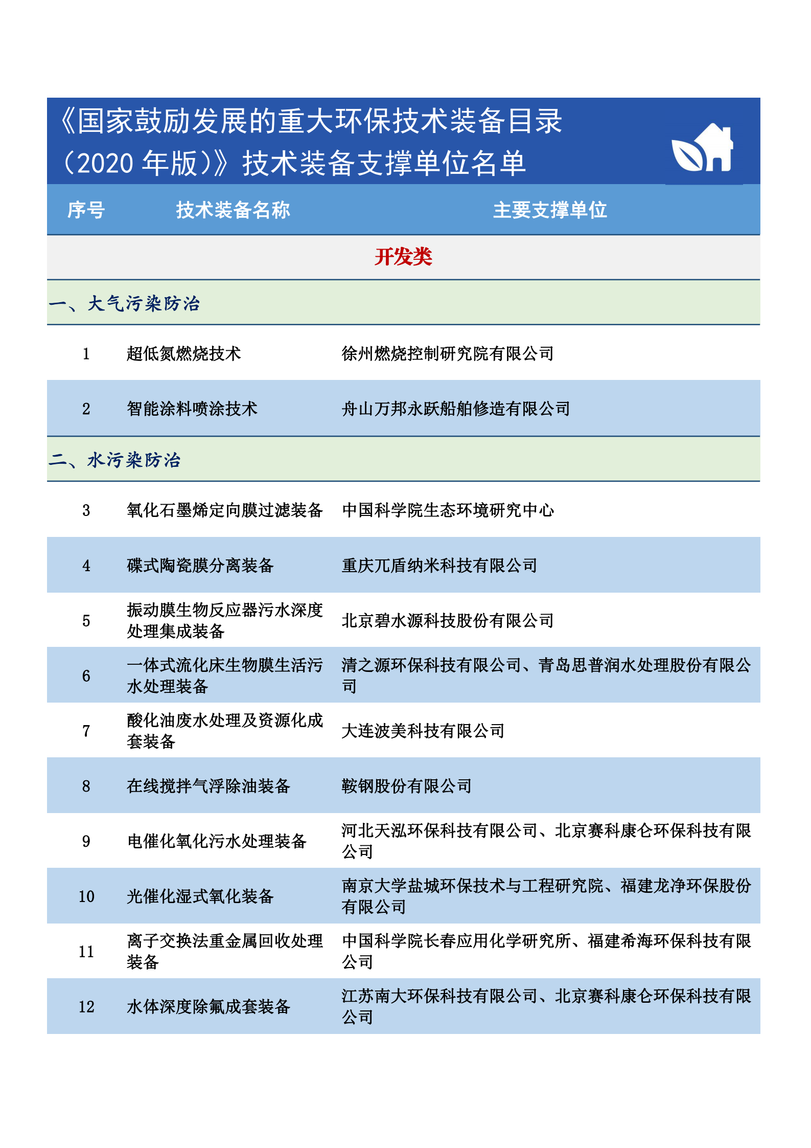 2020年12月25日,工業(yè)和信息化部、科學(xué)技術(shù)部、生態(tài)環(huán)境部聯(lián)合制定的《國(guó)家鼓勵(lì)發(fā)展的重大環(huán)保技術(shù)裝備目錄(2020年版)》經(jīng)過(guò)征意后正式公告。 與征求意見(jiàn)稿相比,公示稿由165項(xiàng)變?yōu)榱?62項(xiàng)。中華人民共和國(guó)工業(yè)和信息化部 科學(xué)技術(shù)部 生態(tài)環(huán)境部公告2020年第52號(hào) 為加快先進(jìn)環(huán)保裝備研發(fā)和應(yīng)...