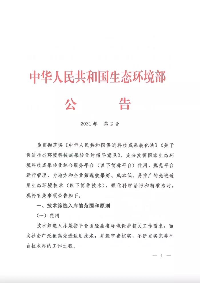 根據(jù)《關(guān)于組織推薦綠色技術(shù)的通知》(發(fā)改辦環(huán)資〔2020〕493號(hào)),經(jīng)各單位審核推薦及第三方機(jī)構(gòu)組織專家評(píng)審等程序,現(xiàn)將通過(guò)評(píng)審的技術(shù)名單予以公示。公示期為2020年12月14日至12月20日,具體名單見(jiàn)附件。 如有異議,請(qǐng)?jiān)诠酒趦?nèi)以書面形式提出意見(jiàn),反饋至國(guó)家發(fā)展改革委(環(huán)資司)。書面意見(jiàn)請(qǐng)寫...