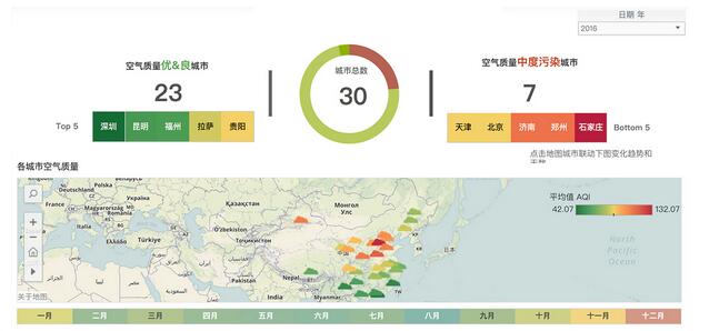 在全國(guó)這些大城市中,哪個(gè)最好?哪個(gè)又最差?分析師TiffanyHuang分析了中國(guó)大陸30個(gè)省會(huì)及直轄市的在2014年至2016年三年來(lái)的值,這是一個(gè)用來(lái)描述空氣質(zhì)量的指數(shù),數(shù)值越高,表征顏色越深,說(shuō)明狀況越嚴(yán)重。這些數(shù)據(jù)由優(yōu)閱達(dá)大數(shù)據(jù)生態(tài)(微信公眾號(hào):dkmeco)進(jìn)行了可視化處理。根據(jù)美國(guó)環(huán)境保...