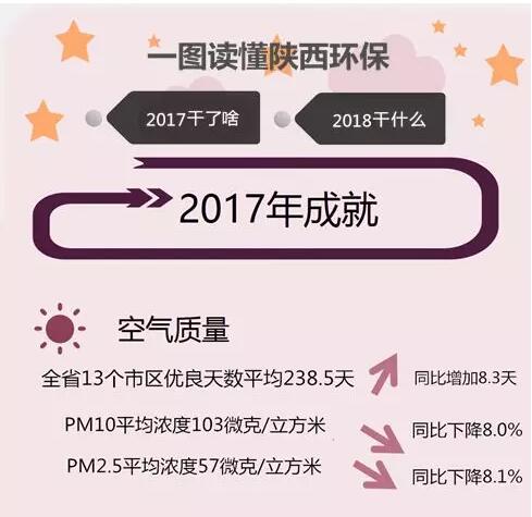 省2017年環(huán)保都做了些什么?、、環(huán)保督察等方面取得了哪些成果?2018年目標(biāo)為何?下圖帶你讀懂陜西環(huán)保2017年成果與2018年目標(biāo)。來源:陜西環(huán)保