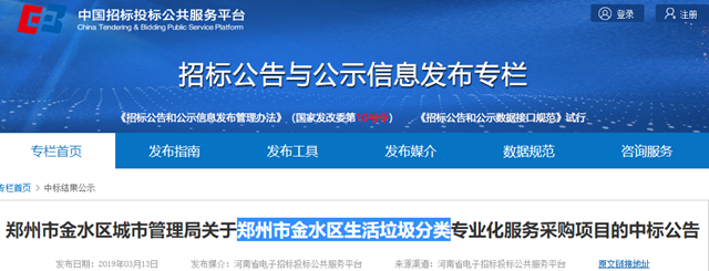 鄭州市金水區(qū)生活垃圾分類項(xiàng)目結(jié)果發(fā)布,聯(lián)運(yùn)環(huán)境攬獲包一