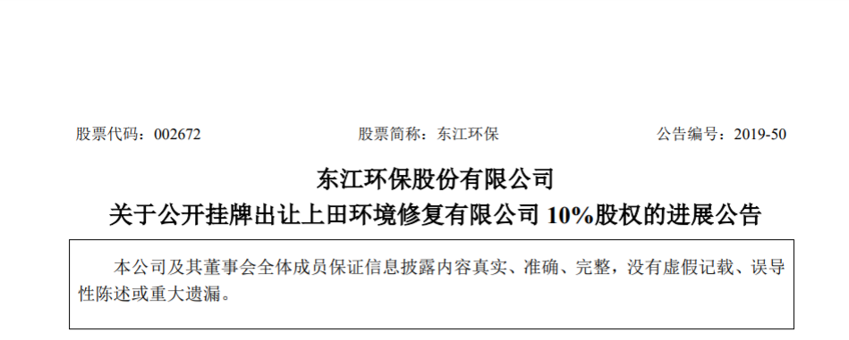 東江環(huán)保轉(zhuǎn)讓上田環(huán)境10%股權(quán),光大環(huán)境接手