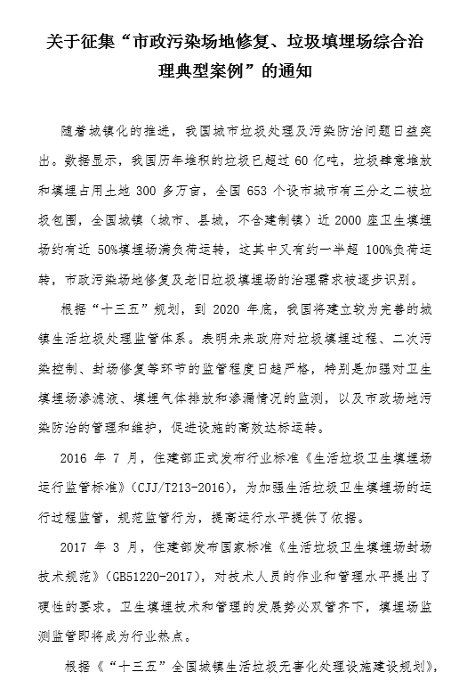 關(guān)于征集“垃圾分類優(yōu)秀模式案例”的通知2016年12月,國(guó)家主席習(xí)近平在中央財(cái)經(jīng)領(lǐng)導(dǎo)小組第十四次會(huì)議中強(qiáng)調(diào),要加快建立分類投放、分類收集、分類運(yùn)輸、分類處理的垃圾處理系統(tǒng);形成以法治為基礎(chǔ)、政府推動(dòng)、全民參與、城鄉(xiāng)統(tǒng)籌、因地制宜的垃圾分類制度;普遍推行垃圾分類制度,努力提高垃圾分類制度覆蓋范圍。20...