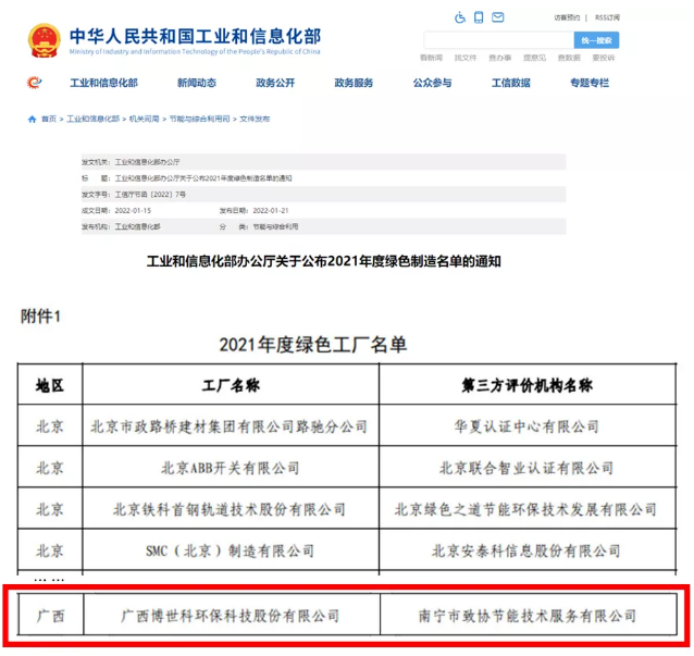 恭喜!博世科環(huán)保入選2021年度“綠色工廠”